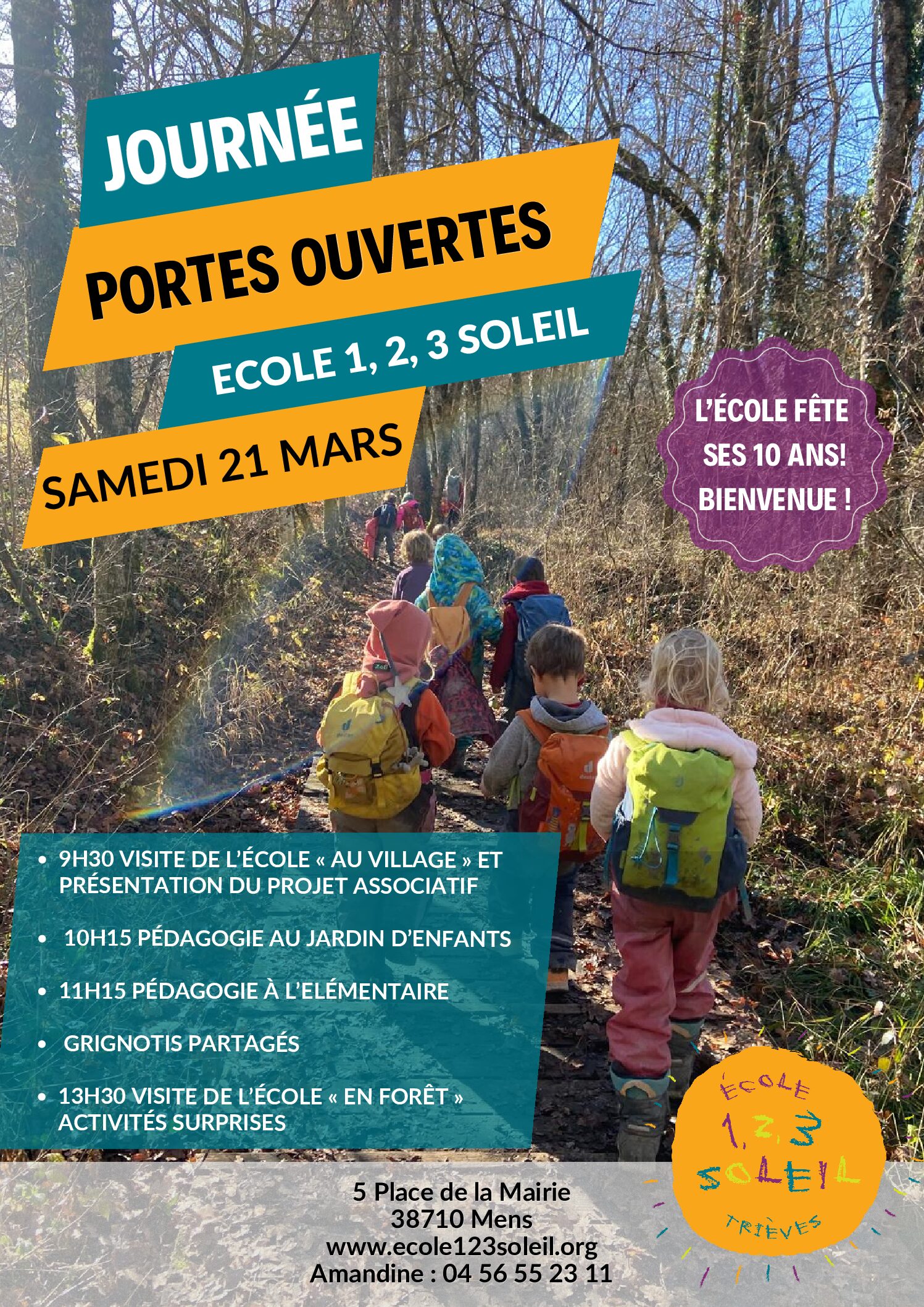 L’Ecole primaire 1 2 3 Soleil (3-11 ans) est heureuse de vous annoncer ses prochaines Portes Ouvertes qui auront lieu le SAMEDI 21 MARS
