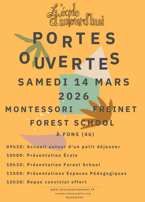 PORTES OUVERTES de L'école d'aujourd'hui qui auront lieu le